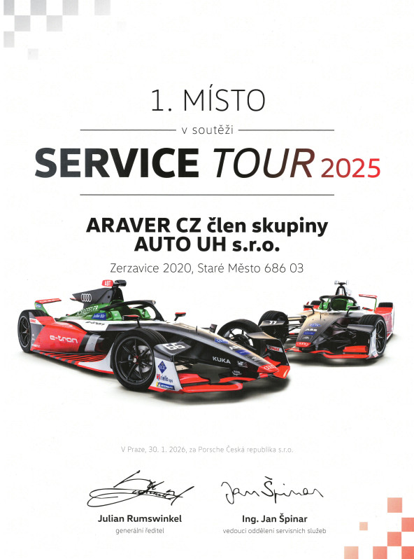 S velkou radostí a hrdostí oznamujeme, že společnost ARAVER CZ člen skupiny AUTO UH obsadila 1. místo v soutěži Service Tour 2025.
