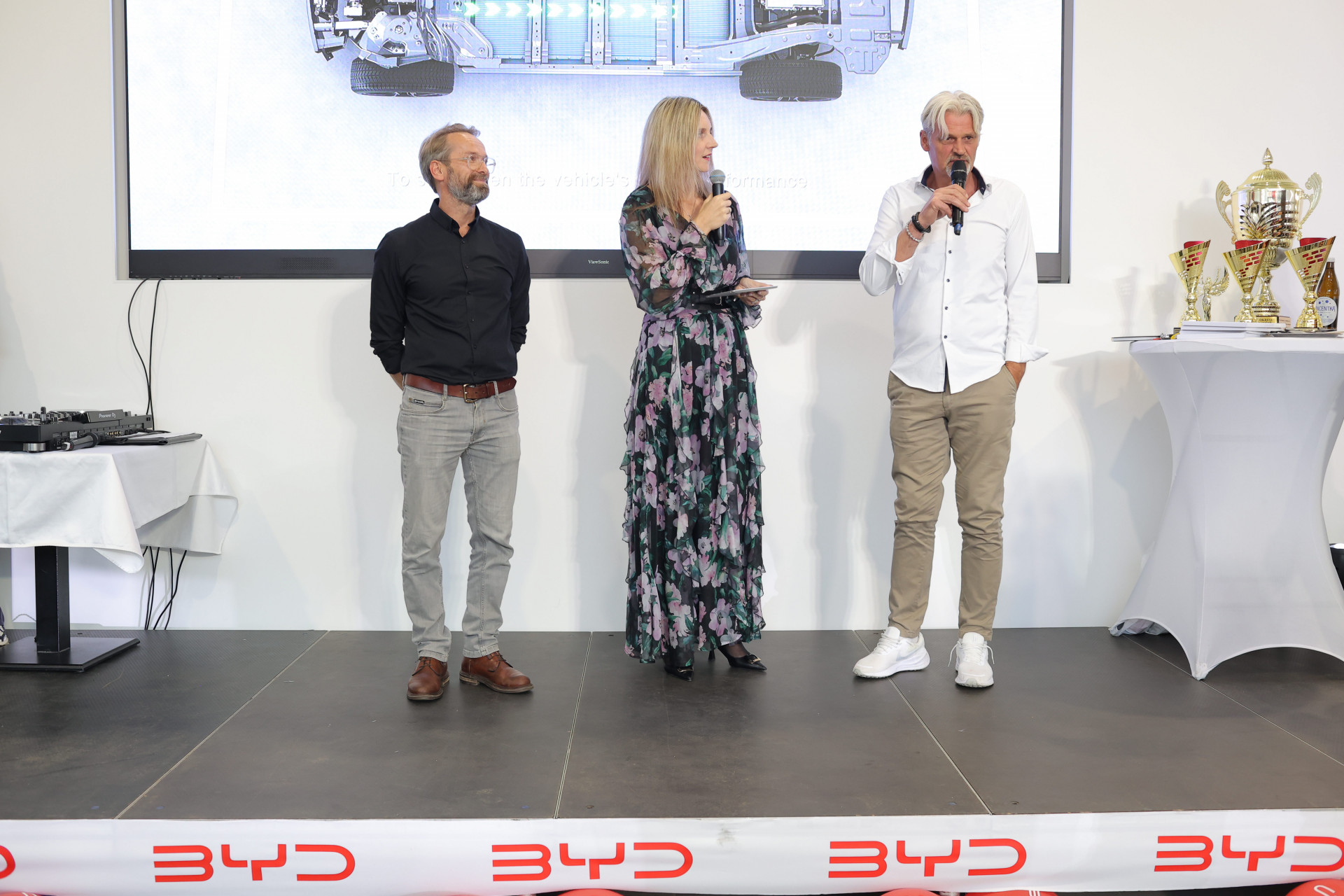 Hosté z řad VIP zákazníkům, obchodních partnerů a médií zažili premiéru modelu BYD Seal 6 DM-i TOURING, setkali se s ambasadorem značky, hercem Janem Révaiem, i fotbalovou legendou Tomášem Skuhravým. Atmosféru večera doplnily významné sportovní a kulturní momenty – vyhlášení ankety Sportovec okresu Uherské Hradiště 2024, předání Ceny Pavla Buráně pro sportovce s handicapem či křest knihy Velký Šéf za účasti Milana Hniličky. Velký ohlas sklidila i charitativní dražba hokejových dresů, jejíž výtěžek podpoří neziskovou organizaci Korunka pomáhá. Hudební doprovod DJ Kharma dodal akci energii a moderní náboj. Slavnostní večer jasně ukázal, že otevření showroomu BYD není jen formálním aktem, ale skutečným milníkem. Propojení moderních technologií, sportu a kultury vytvořilo jedinečnou atmosféru a symbolicky odstartovalo novou kapitolu elektromobility v České republice.